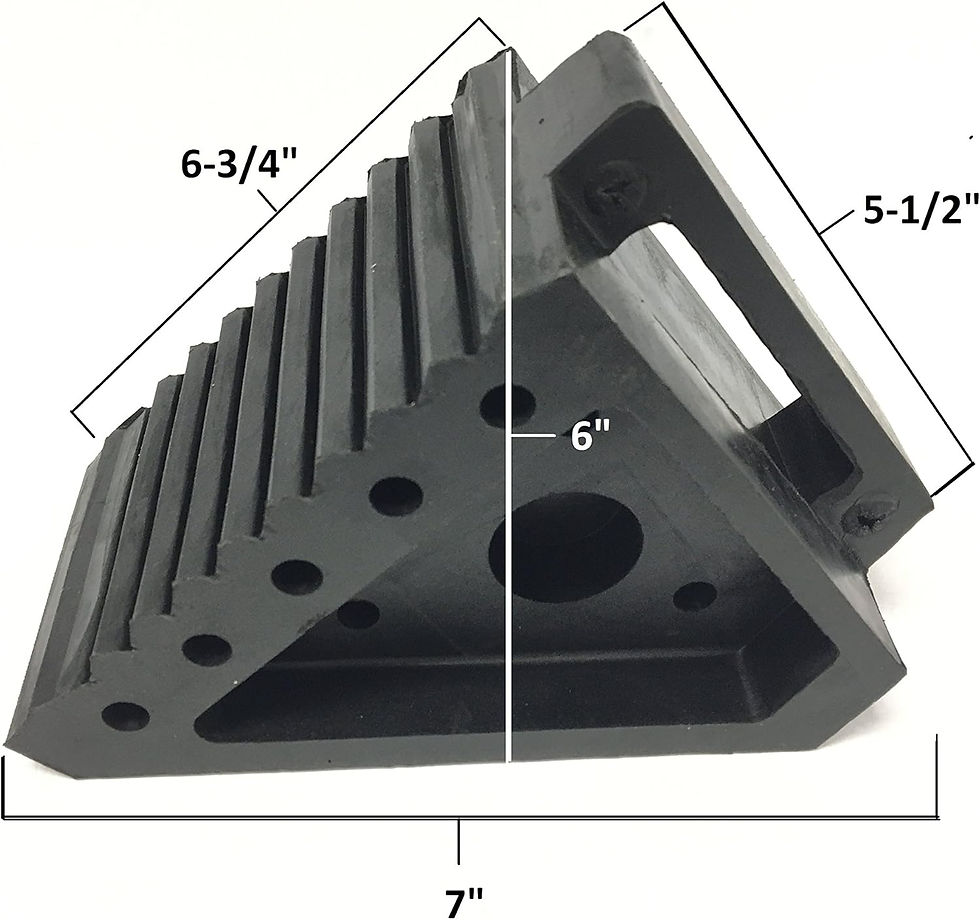 Solid Rubber Heavy Duty Black Wheel Chock 2-Pack, 8" x 4" x 6"